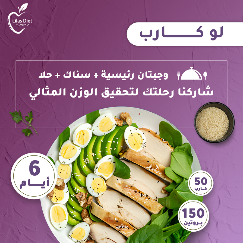 لو كارب وجبات من ليلاس دايت -Lilasdiet النظام الغذائي الأمثل لتحقيق أهدافك في إنقاص الوزن من خلال تقليل استهلاك الكربوهيدرات و مع باقتنا ستتمكن من الاستمتاع بوجبتين رئيسيتين وسناك وحلا يوميًا مصممة بعناية لتوفير التغذية المثالية وتنشيط عملية الأيض لديك خلال 6 أيام فقط ستلاحظ الفرق في مستويات الطاقة لديك وراحة البال مع وجبات شهية ومتوازنة تحتوي على 50 جرامًا من الكربوهيدرات و150 جرامًا من البروتين يوميًا فلا تفوت فرصة تجربة هذه الباقة المميزة التي تضمن لك تنوعًا في الأطعمة وجودة في المكونات مما يجعل رحلتك نحو الوزن المثالي سهلة ولذيذة فـ ابدأ الآن وحقق أهدافك مع لو كارب 1 لأن صحتك تستحق الأفضل.